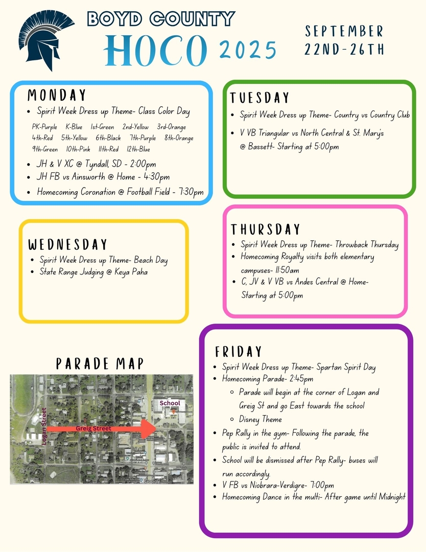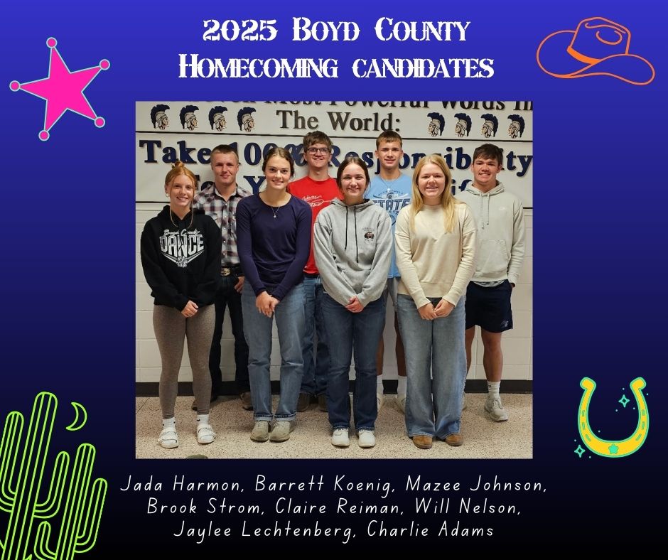 read moreThe Boyd County Sr. High School Band has been invited back to participate in the Battle of the Bands at Elkhorn Valley High School. The Battle of the Bands is on November 4, 2025 starting at 7:00 p.m. It is a free will donation added to each participating band's personal school fan base box. 100% of the proceeds collected in the Boyd County Box goes to the Boyd County Band. We will have a bucket set up at the following home games for those who can not attend the Battle of the Bands play off at Elkhorn Valley School on November 4th and still want to contribute to their fan base box. The bucket will be out at the volleyball games on October 7th and 16th and the football game on October 10th.