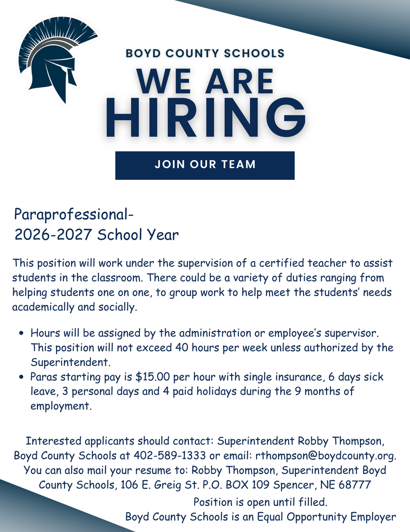 Current Employment Opportunities at Boyd County Schools